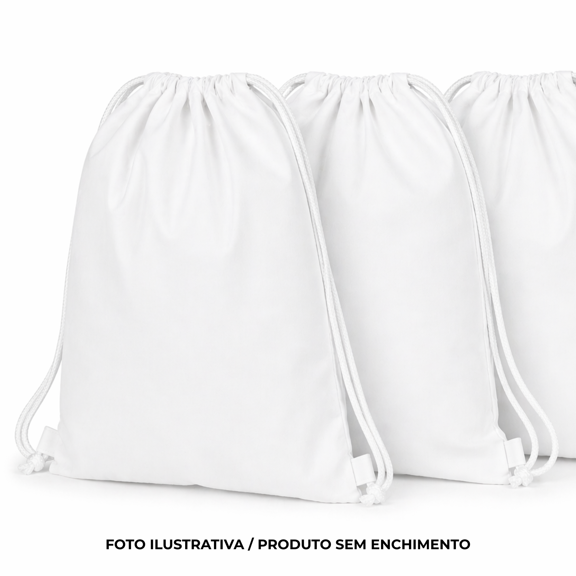 Mochila para sublimação em Oxford branco 100% poliéster e com cordinha em algodão branca.